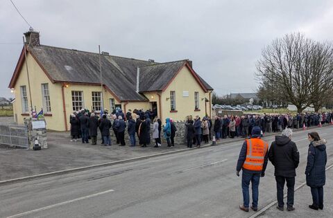 Some of the large crowd waiting to pay their respects to members of Cllr Anthony Waldron's family at the Old Schoolhouse in Ballintubber on Thursday evening. Pic: Liam Reynolds