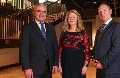 Minister for Social Protection and Minister for Rural and Community Development and the Gaeltacht Dara Calleary, CLS CEO Evelyn O'Toole and IDA Ireland CEO Michael Lohan. Pic: Aengus McMahon Photography