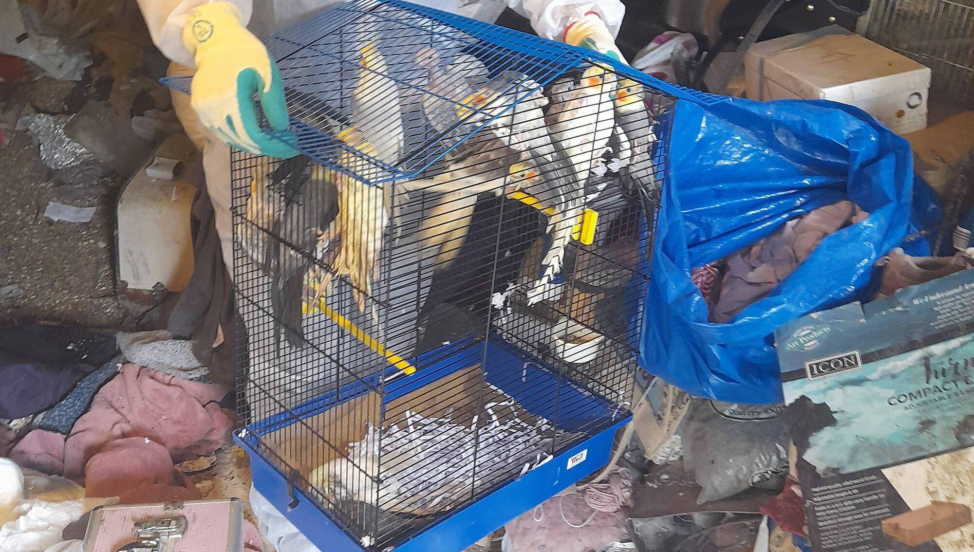 “From the build-up of faeces, rotten food, fly infestation, and webs in the cages, it was clear these birds hadn't been tended to properly in a very long time. Very sadly, we discovered some birds that had already passed away and some that had been left with broken wings, beak damage and severe feather loss."