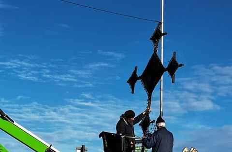 Members of Strokestown's Men's Shed have erected the Brigid's Cross on the Bridge at Tarmonbarry — the divide between Connacht and Leinster.