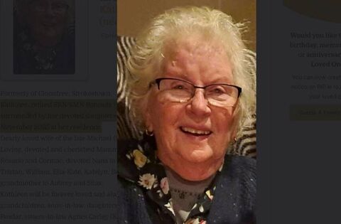 She is survived by her children, Connie, Kieran, Donal, Audrey, Peter, Rosario and Cormac; grandchildren, Lukas, Molly, Bobby, Ewan, Cait, Blathnaid, Tristan, William, Ella-Kate, Beibheann, Fianna and Niamh; great-grandchildren, Aubrey and Silas; sons-in-law, daughters-in-law, nieces, brother-in-law, Peadar (Clooneigh), sisters-in-law, Mrs Agnes Carley (Kilglass) and Ms Eithne Dalton (Castlerea) and other relatives to whom deepest sympathy is extended.