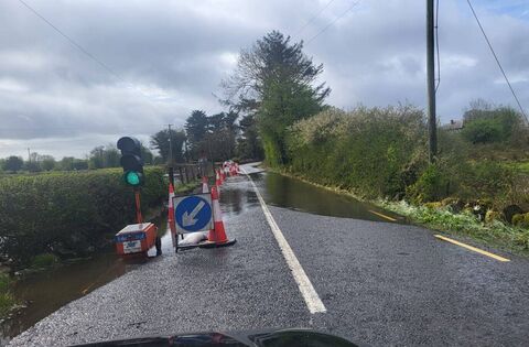 The current stop/go system on the Rahara to Curraghboy Road as a result of flooding from Lough Funshinagh.