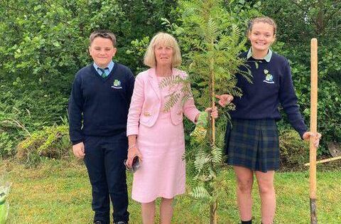 Principal Eileen Donohoe with students at Athlone Community College planting a tree to mark Eileen's 47 years of service to the school on Wednesday. Picture: Courtesy of ACC Facebook page