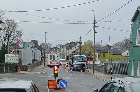Traffic lights in operation on Main Street, Castlerea this afternoon. Picture: Gerry Faughnan