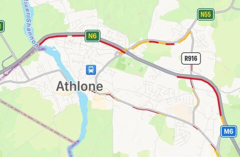 There are major traffic delays on the Westmeath/Roscommon border around Athlone this evening.