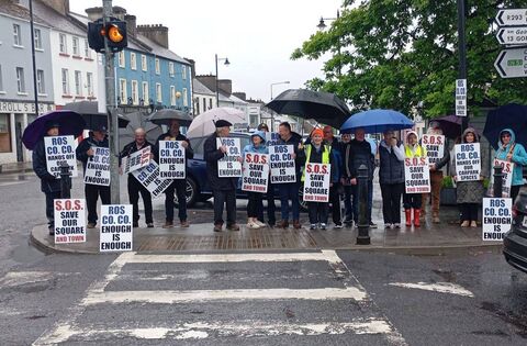 Traders and residents protesting on Tuesday in The Square, Ballaghaderreen. Daily demonstrations highlighting concerns about the council's public realm plan has entered its twelfth week.