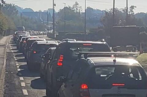 Traffic backed up coming into Athlone from Bealnamulla in South Roscommon on Thursday morning