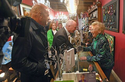 Jim Gavin meets Agnes Brennan of Time Pieces during his visit to Roscommon Town. Pictures: Gerard O'Loughlin