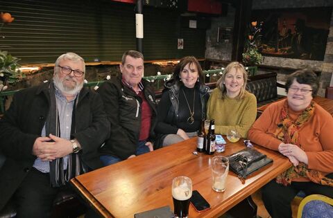Seamus Brogan, Paraic Price, Caroline Price, Collette Smith and Marion Brogan enjoying the recent Ballintubber Rambling House event held in Garvey's, Ballintubber.