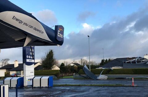 The roof of the Emo Filling Station on the Athlone Road beside Roscommon University Hospital ended up in a nearby residential property across the road.