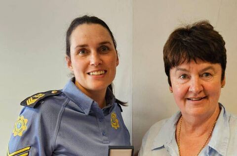 Sergeant Maura McGarry, Boyle Garda Station, presented a garda medal to Reserve Garda Jessie Doherty who is due to retire from An Garda Síochána shortly.