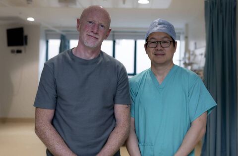 Ballintubber man Desmond Egan, the first patient to undergo the convergent biaxial 3-dimensional (CB3) fixation procedure, pictured with Professor Alan Soo, consultant cardiothoracic surgeon at University Hospital Galway.