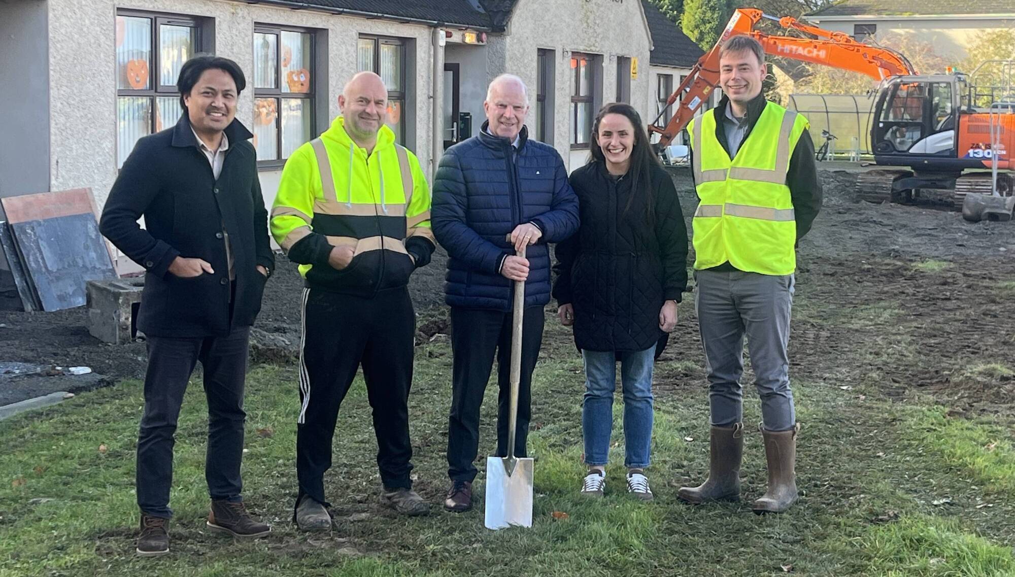 Pictured at the sod-turning ceremony at Athleague NS were Jelli Monelli (architect with Coughlan Associates), Allen Kenny (Allen Kenny Construction Ltd.), Anthony Flaherty (chairperson of the Board of Management), Avril Hickey (principal) and Adrian Sheedy (project engineer Coughlan Associates)