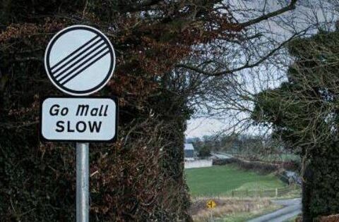 The new 'Rural Speed Limit' sign - a white circle with five diagonal black lines - with the words 'Go Mall, Slow' written underneath will be changed from Friday to indicate to motorists that they should drive at a limit of 60km/h.