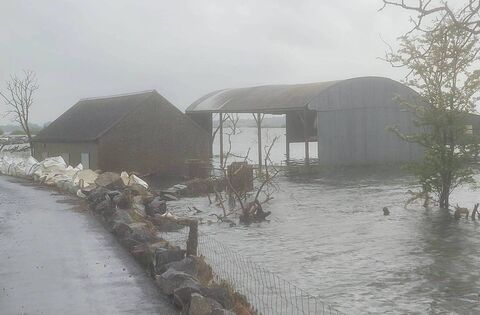 A photograph taken today of one of several haysheds submerged in water at Lough Funshinagh.
