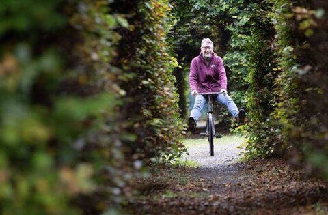 John Cunningham on a historic bicycle, which he renovated, taking a ride through Strokestown Park, which has been earmarked for €1.2 million in funding. Picture: Brian Farrell