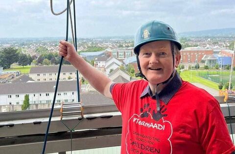 A local man has raised hundreds of euro for Autism Assistance Dogs Ireland by abseiling down an iconic sporting venue.
