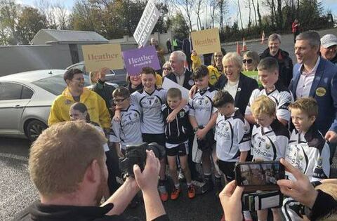 Presidential candidate Heather Humphreys pictured with some young Éire Óg supporters at today's Intermediate County Final between Éire Óg and Strokestown in Kiltoom.