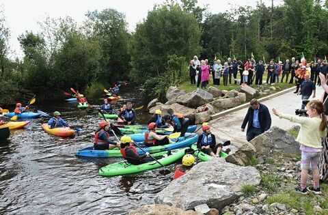 Kayakers arrive for the official opening of the recently constructed slipways and cycle loop at the slipway at Dundermott, Ballymoe. The projects were the brainchild of the late Cllr Anthony Waldron who worked tirelessly to improve tourism in the local area. Pic: Gerard O'Loughlin