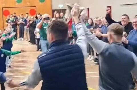 The players were met on their arrival at the club by joyous supporters who celebrated their latest provincial success.