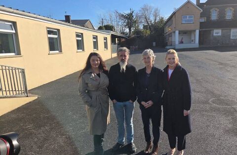 Presidential candidate Catherine Connolly with MEP Luke 'Ming' Flanagan, Deputy Claire Kerrane and Cllr Leah Cull at St. Anne's NS, Castlerea.