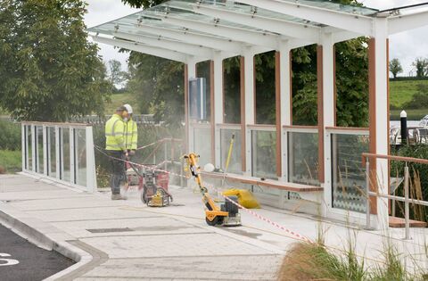 Work going on at the newly opened bus-stop in Carrick-on-Shannon. Picture: Gerry Faughnan