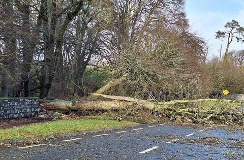 A tree blocking the relief road between Boyle and the N4 beside Abbey Park GAA grounds during Storm Éowyn. The storm has not just taken a heavy toll on the county's infrastructure but also on people's mental health. Picture: Shirley Cunningham Cooke