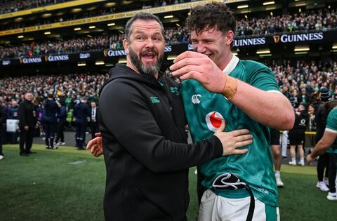 Ireland head coach Andy Farrell and Darragh Murray of Ireland after their side's victory in the Guinness 6 Nations Rugby Championship match between Ireland and Scotland at the Aviva Stadium in Dublin. Photo by Brendan Moran/Sportsfile