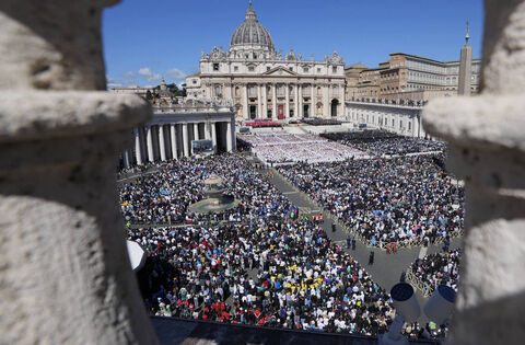 A view of the funeral of Pope Francis in St. Peter's Square at the Vatican, Saturday, April 26, 2025. (AP Photo/Gregorio Borgia)