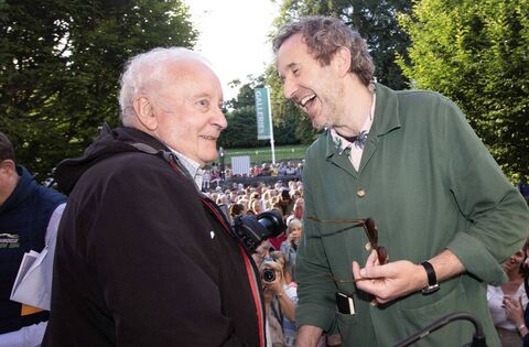 Actor Chris O'Dowd pictured with his father, Sean, when he returned to his native Boyle to officially open Boyle Arts Festival. Pic. Brian Farrell