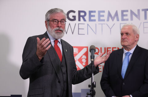Former taoiseach Bertie Ahern and former Sinn Fein president Gerry Adams at the three-day international conference to mark the 25th anniversary of the Belfast/Good Friday Agreement.
