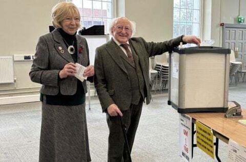 Mr Higgins and his wife Sabina voted at their polling station at St Mary’s Hospital in Phoenix Park on Friday morning.