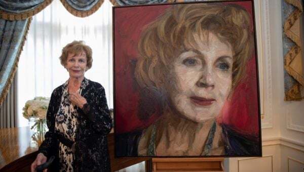 Her Irish literary inspirations were honoured by a friend who carried a copy of James Joyce’s Ulysses, and another presented a portrait of the late author Samuel Beckett, a friend of O’Brien.