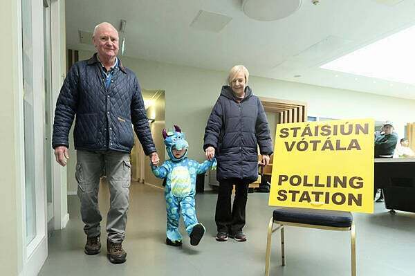 Ms Humphreys arrived at Killeevan Central National School in Newbliss, Co Monaghan with her young granddaughter Charlotte, and greeted other voters.