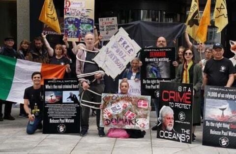 A protest has been held outside the Danish embassy in Dublin calling for the release of veteran environmental activist and anti-whaling campaigner Paul Watson.