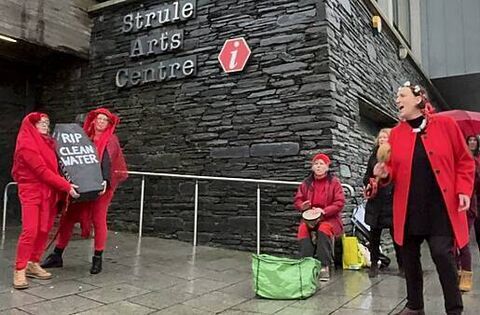 Activists from the Save Our Sperrins group, which is opposed to the mine, staged a colourful protest with dancing and singing outside the building before proceedings got under way.