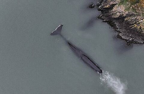 It was last sighted around 4.30pm on Tuesday but the Irish Whale and Dolphin Group are urging members of the public to be on the lookout for the whale in case of a live stranding.