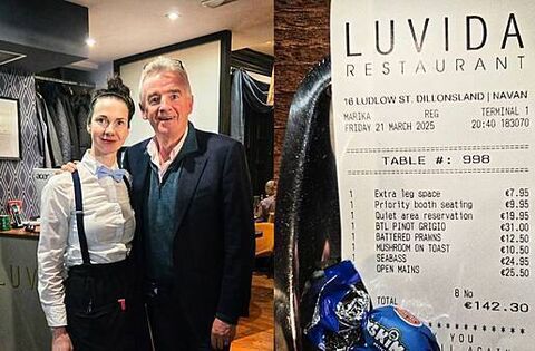 Restaurant which hit Michael O'Leary with Ryanair-style charges hopes he sees funny side