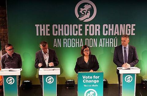 Flanked by senior party spokespeople at the Smock Alley Theatre in Dublin, Ms McDonald said that her party had “the best team on the pitch” and that the moment has come “where history meets opportunity”.
