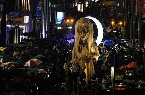 Crowds gathered in inner city Dublin for the Macnas Halloween Parade.