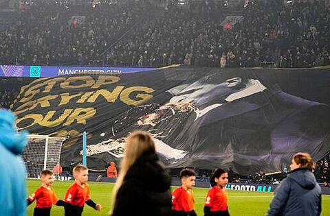 Man City fans displayed a picture of Rodri kissing the trophy with the message ‘Stop crying your heart out’, mocking Real’s boycott of the ceremony.