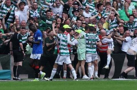 Celtic go six points clear with 2-1 win over 10-man Rangers