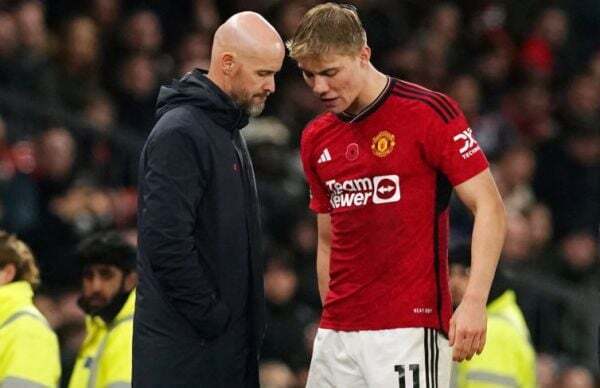 It is a significant blow given Hojlund’s electric form of late – the 21-year-old Dane has scored seven goals in his last six appearances for United – and leaves Ten Hag short of options in attack, with Anthony Martial out until April following surgery on his groin.