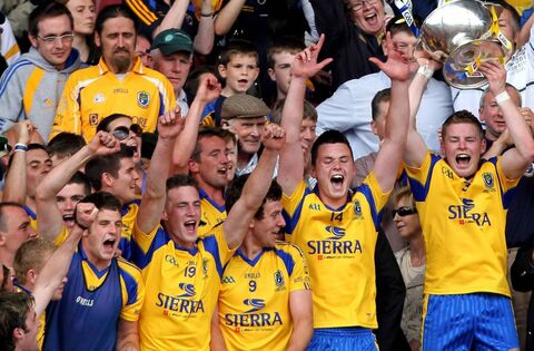Roscommon senior football captain Peter Domican lifts the Nestor Cup to confirm his side as 2010 Connacht senior football champions. The panel and management held a reunion last weekend. Picture: INPHO/James Crombie