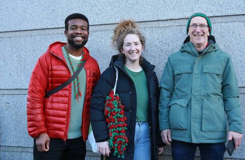 Fidel Benson with Áine and Harry Mooney getting behind St. Brigid's ahead of their All-Ireland final against Daingean Uí Chúis in Croke Park on Sunday last. Picture: Bernie O'Farrell