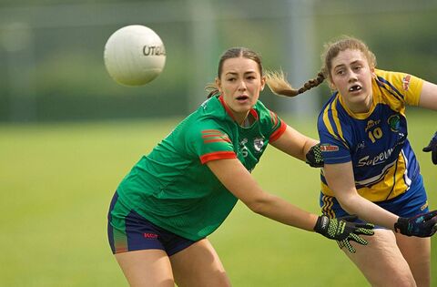 St. Brigid's defender Ria Lennon and Clann na nGael's Hope Glynn during the recent senior ladies' football encounter between the teams in Kiltoom. Picture: Gerard O'Loughlin