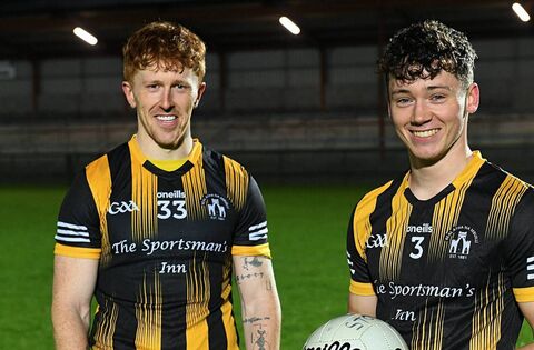 Diarmuid McGann and Shane McGinley are celebrating a county intermediate football championship title with Strokestown following their victory against Éire Óg in Kiltoom on Sunday afternoon. Picture: Gerard O'Loughlin