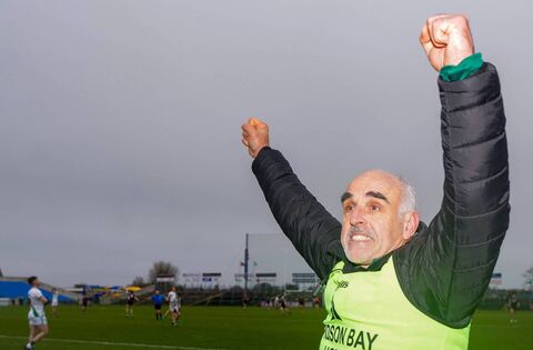 TOP MAN: St. Brigid's senior football manager, Anthony Cunningham, celebrates his side's Connacht club senior football success against Maigh Cuilinn at King and Moffatt Dr. Hyde Park on Sunday last. Picture: INPHO/James Lawlor
