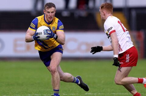 Roscommon's Eoin McCormack with Tyrone's Seanie O'Donnell during the sides' Division One Football League meeting in Omagh last January. Picture: INPHO/John McVitty