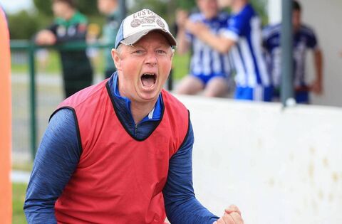 St. Dominic's senior hurling manager, Martin "Thady" Beirne, celebrates his side's famous victory against Athleague in last year's county semi final. Picture: Bernie O'Farrell